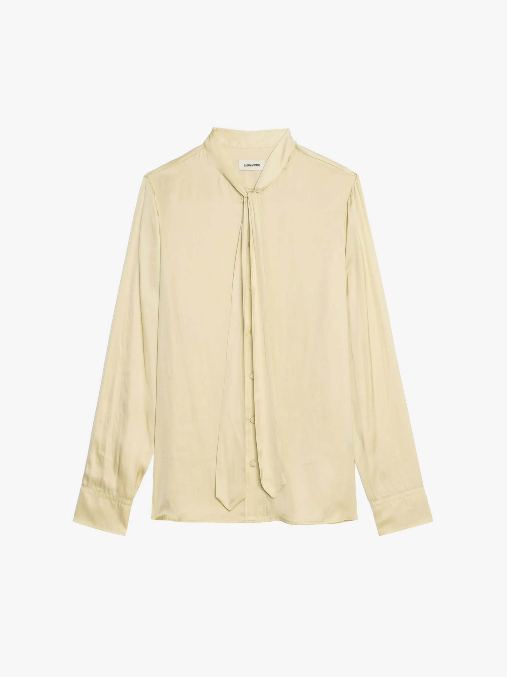 Satin shirt with pussy-bow collar, rhinestone wings on back and button fastening. Description & details - Fluid satin shirt - Pussy-bow collar - Button fastening - Rhinestone wings on back - Long sleeves Model is 178 cm / 5' 10" and is wearing a size S This item has a fitted cut. If you are between sizes or prefer a looser fit, go for one size up. Composition 57% Polyester** 43% Polyester Care - Hand-wash or machine-wash inside out in a mesh laundry bag on a 20°C delicate cycle with a maximum spin speed of 400 rpm - Air dry flat - Iron inside out at a maximum of 110°C Product code: WWSH02266_BLOND
