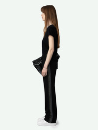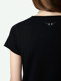 Short-sleeved organic cotton Henley T-shirt with ‘Be Kind To Your Mind’ message on the inside and diamante ZV wings on the back. Description & details - Women’s black organic cotton V-neck Henley T-shirt - ‘Be Kind To Your Mind’ message hidden inside - Henley T-shirt with 5 buttons along the open V neck - Short sleeves and raw edges - ZV wings embellished with diamante on the back Model is 175 cm / 5' 8" and is wearing a size S This item is true to size. We recommend buying your usual size. Composition 100% COTTON* Care - Machine-wash inside out on a 30°C delicate cycle with similar colours - Air dry - Iron inside out at a maximum of 110°C, avoiding any customised details Product code: JWTN00447_NOIR