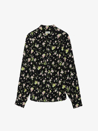 Women’s black floral-print blouse. Description & details - Women’s black blouse - Floral print - Round, buttoned neckline - Half button closure down front - Long sleeves and tighter cuffs Model is 174 cm / 5' 8" and is wearing a size S This item is true to size. We recommend buying your usual size. Composition 100% VISCOSE Product code: WWSH00568_NOIR