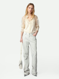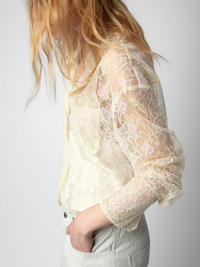 Ecru lingerie-style long shirt with floral lace. Description & details - Women’s Scout ecru long lingerie-style shirt - Masculine cut - Floral-motif lace - Shirt collar and button closure - Chest pocket - Long sleeves and buttoned cuffs Model is 178 cm / 5' 10" and is wearing a size S This item runs large. We recommend buying one size smaller than your usual size. Composition 91% POLYAMIDE 9% POLYESTER Care - Hand-wash or machine-wash inside out in a mesh laundry bag on a 20°C delicate cycle with a maximum spin speed of 400 rpm - Air dry flat - Iron inside out at a maximum of 110°C Product code: WWSH00570_SCOUT
