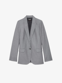 Structured straight blazer with button fastening and polka dot rhinestones. Description & details - Straight blazer jacket - Silver polka dot rhinestones - Pointed collar - Button fastening - Back vent - 2 flap pockets, one welt pocket - Long sleeves and turned-up cuffs Model is 176 cm / 5' 9" and is wearing a size 36 This item is true to size. We recommend buying your usual size. Composition 80% Polyester** 20% Viscose Care This garment should be dry-cleaned only. Product code: WWBL01886_GRIS CHINE