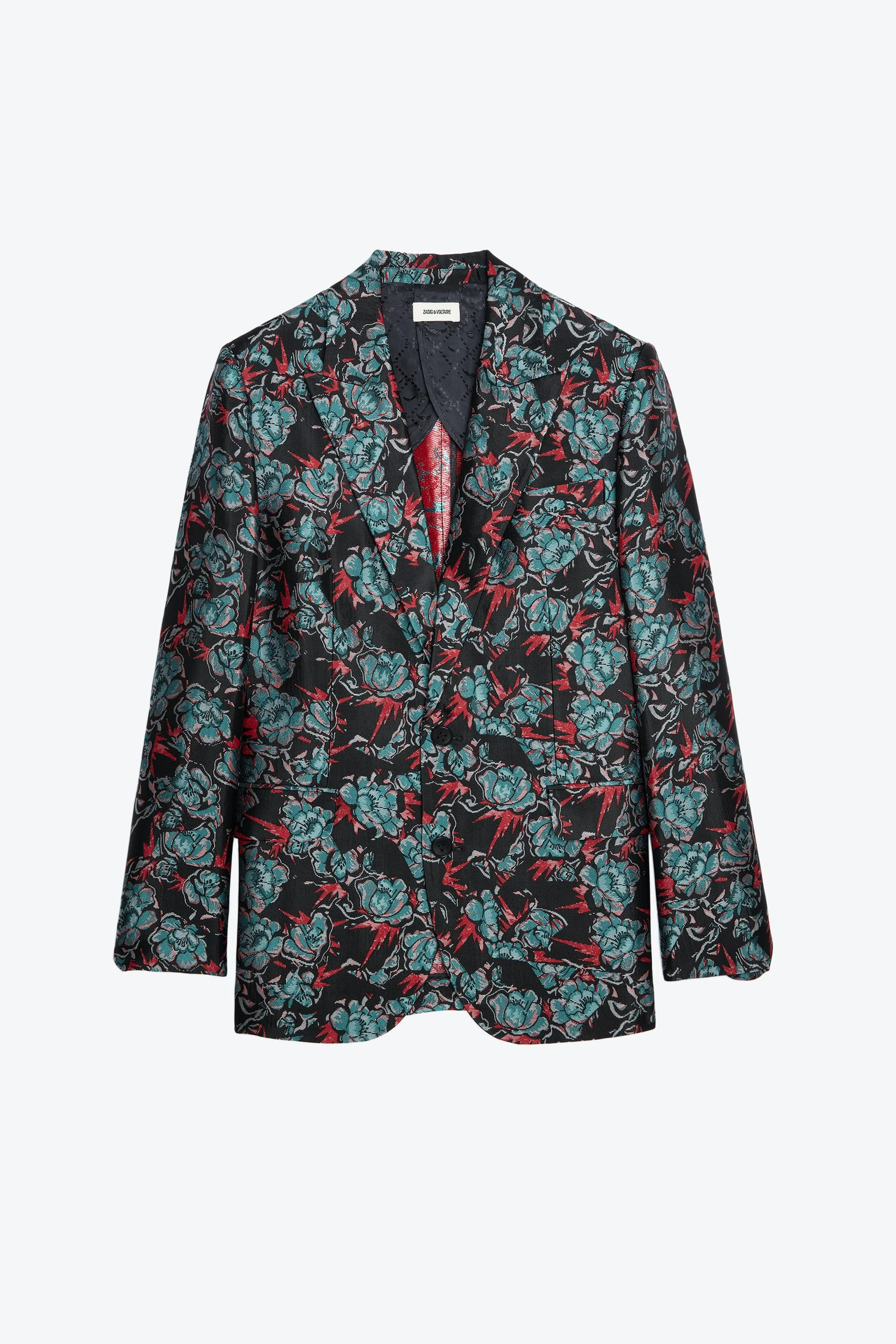 Women’s black floral jacquard blazer. Description & details - Women’s structured black floral jacquard blazer - Double-breasted fastening - Pointed collar and shoulder pads - 2 flap pockets and 1 piped chest pocket - Long sleeves with mitred cuffs and slit at the back Model is 179 cm / 5' 10" and is wearing a size S This item is true to size. We recommend buying your usual size. Composition 64% VISCOSE 36% ACETATE Care Suits should be dry-cleaned only. Nonetheless, it is possible to smooth out creases by steaming from a distance of 8 in. Product code: WWBL00827_NOIR
