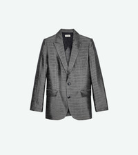 Women’s anthracite wing-print jacquard blazer. Description & details - Women’s anthracite wing-print jacquard blazer - Masculine, structured cut - Double-breasted fastening and slit to the back - Pointed collar, shoulder pads, long sleeves with mitred cuffs - 2 flap pockets and 1 piped breast pocket Model is 174 cm / 5' 8" and is wearing a size 36 This item is true to size. We recommend buying your usual size. Composition 74% VISCOSE 25% ACETATE 1% POLYAMID Care Suits should be dry-cleaned only. Nonetheless, it is possible to smooth out creases by steaming from a distance of 8". Product code: WWBL00826_ANTHRACITE