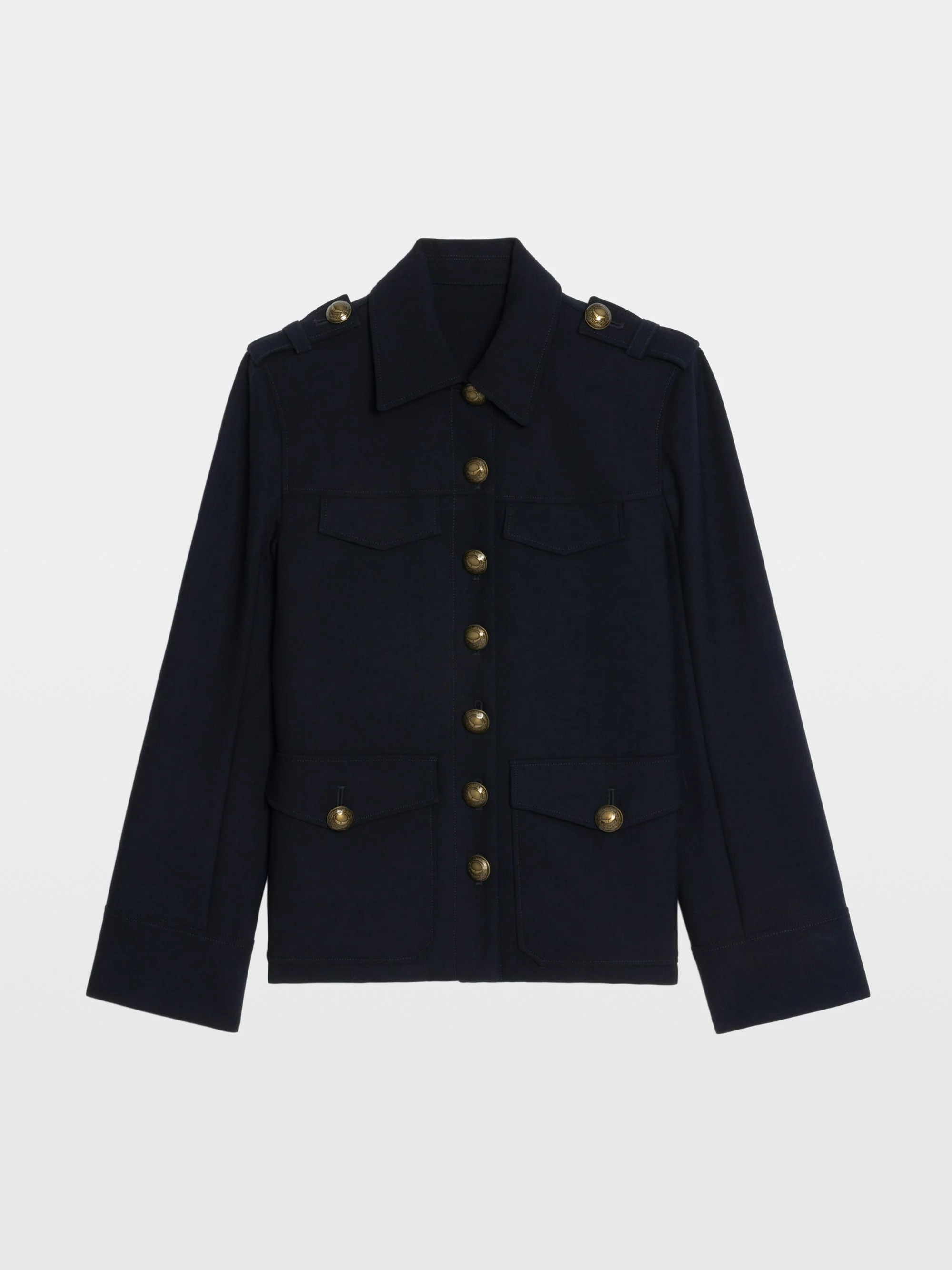 Military-inspired tailored blazer with button closure and multiple pockets. Description & details - Military-inspired tailored blazer - Classic collar - Button closure - Patch pockets and flap pockets - Long sleeves Model is 181 cm / 5' 11" and is wearing a size S This item fits true to size. Choose your usual size. Composition 43% Polyester** 26% Polyester 23% Viscose** 8% Elasthanne Care This garment should be dry-cleaned only. Product code: WWBL01981_ENCRE