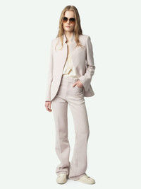 Tailoring, but make it rock ‘n’ roll. The Very blazer is sharp yet effortless, woven with subtly shimmering thread for a touch of understated glamour. Sleek lines, bold structure—whether over denim or a slip dress, it’s the ultimate power piece with just the right amount of shine. Description & details - Structured blazer jacket in shimmer cotton - High collar - 2 flap pockets and 1 welt chest pocket - Back vent - Long sleeves and notched cuffs Model is 171 cm / 5' 7" and is wearing a size S This item is true to size. We recommend buying your usual size. Composition 48% Cotton** 22% Viscose 20% Cotton 5% Polyester 5% Polyamide Care This garment should be dry-cleaned only. Product code: WWBL01930_LILAS