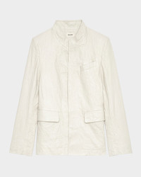 - Zadig & Voltaire "Veryn" jacket crafted from crumpled genuine leather in a unique silhouette - High neckline - 3/4 sleeves - Chest welt pocket - Two flap pockets - Hip length - Open closure - Leather - Leather method dry cleaning - Imported