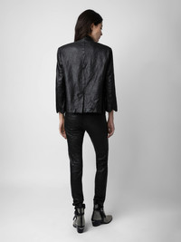 Women’s black leather jacket. Description & details The iconic Verys jacket takes on the Maison’s signature material: crinkled leather. - Zadig&Voltaire Women’s black crinkled leather jacket - Long sleeves - Stand-up collar - Straight cut - Chest pocket - 2 flap pockets Model is 180 cm/5'11" and is wearing a size 36 Model is 180 cm / 5' 10" and is wearing a size S This item is true to size. We recommend buying your usual size. Composition 100% LAMBSKIN Care This garment should be cared for by a leather professional. Product code: SHCU1403F_NOIR