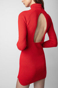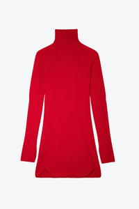 Women’s short red merino wool dress with turtleneck and cut-out at the back. Description & details - Women’s short Japon red merino wool dress - Turtleneck - Overstitched details, cut-out at the back and pointelle ZV signature at the front - Long sleeves with thumbholes Model is 180 cm / 5' 10" and is wearing a size S This item is true to size. We recommend buying your usual size. Composition 100% WOOL MERINOS Care - Hand-wash or machine-wash on a 20°C wool cycle with a maximum spin speed of 400 rpm - Do not wring - Air dry flat - Iron inside out at a maximum of 110°C, avoiding any customised details Product code: KWDR00171_JAPON
