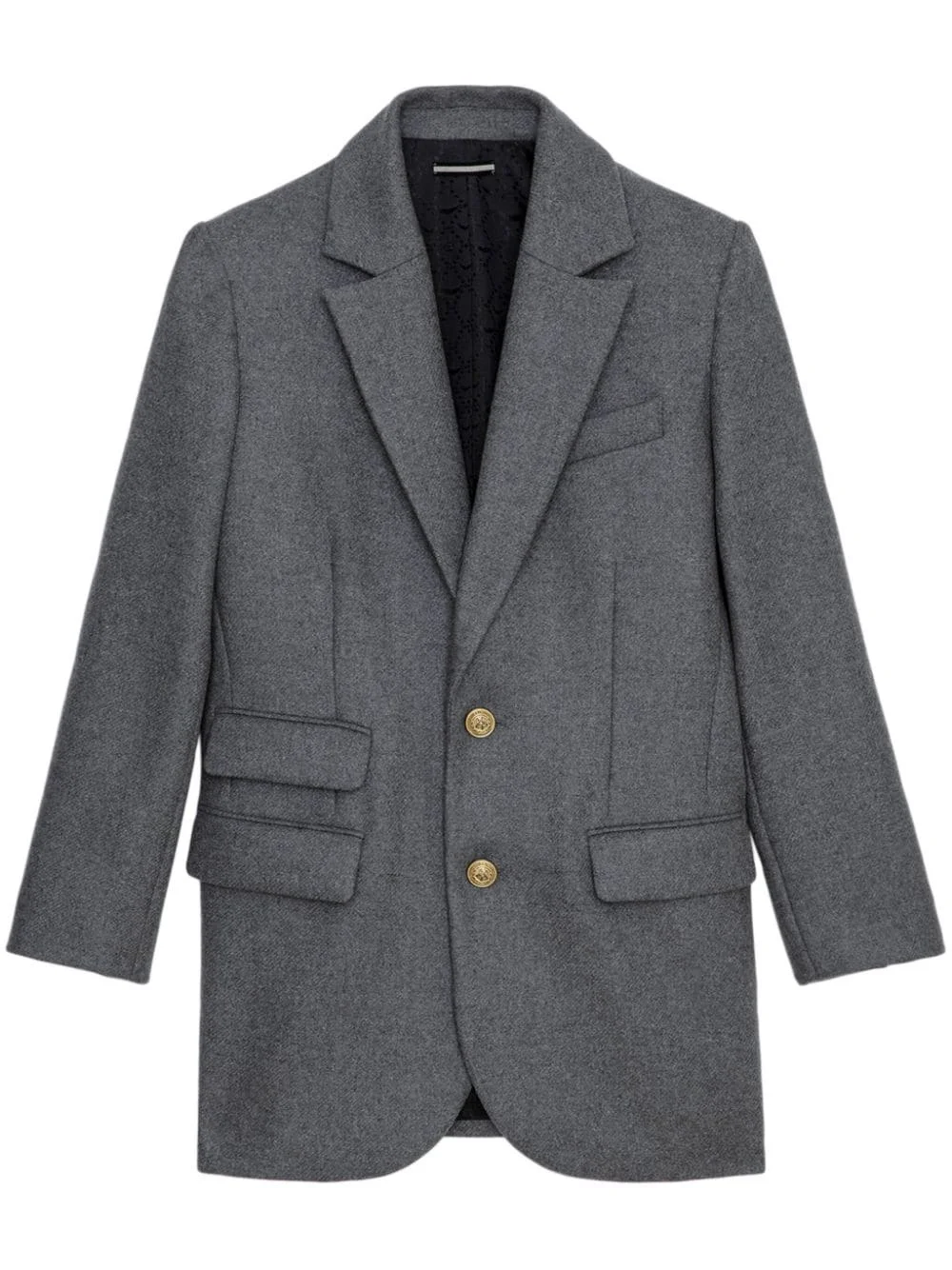 Violet single-breasted coat Highlights - Medium grey - Wool blend - Embossed gold-tone buttons - Applique logo - Notched lapels - Front button fastening - Shoulder pads - Long sleeves - Chest welt pocket - Ticket pocket - Two side flap pockets - American rear vent - Full lining Imported Composition Wool 62%, Polyamide 38% Washing instructions Specialist Cleaning