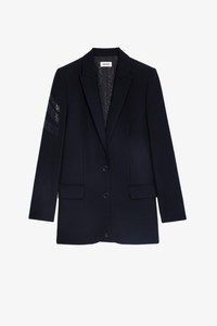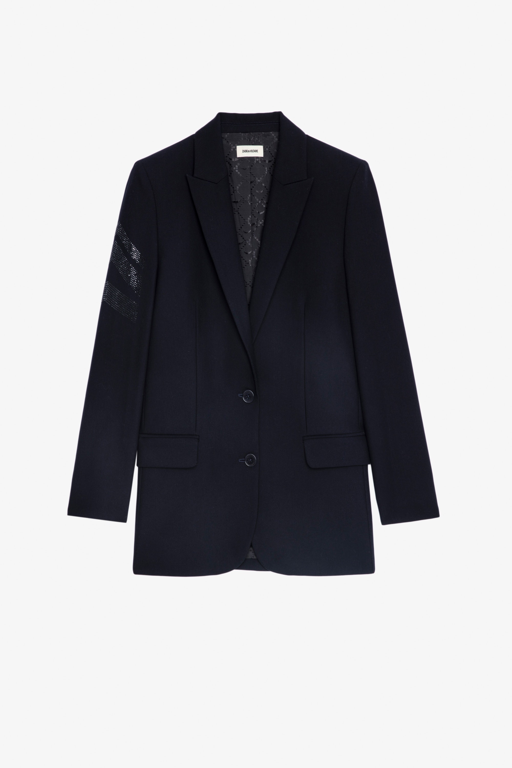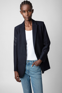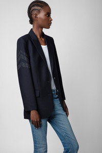 Women's navy blazer Description & details Zadig&Voltaire women's navy 1 button blazer with strass arrow detail on sleeve. Composition 69% POLYESTER 23% VISCOSE 8% ELASTHANNE Product code: WKCA0201F_ENCRE