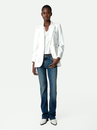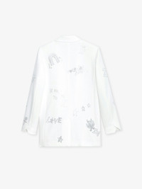 Women's white blazer with customized diamanté details designed by Humberto Cruz. Description & details Customized details designed by Humberto Cruz, an artist and illustrator from San Diego. Influenced by pop culture, fashion and colors, he describes his work as spontaneous and quirky. - Women’s white blazer - 1 button closure - Rhinestone details - 2 flap pockets - Long sleeves - Slit in the back Model is 174 cm / 5' 8" and is wearing a size S This item is true to size. We recommend buying your usual size. Composition 69% POLYESTER 23% VISCOSE 8% ELASTHANNE Care This garment should be dry-cleaned only. Product code: WWBL00841_JUDO
