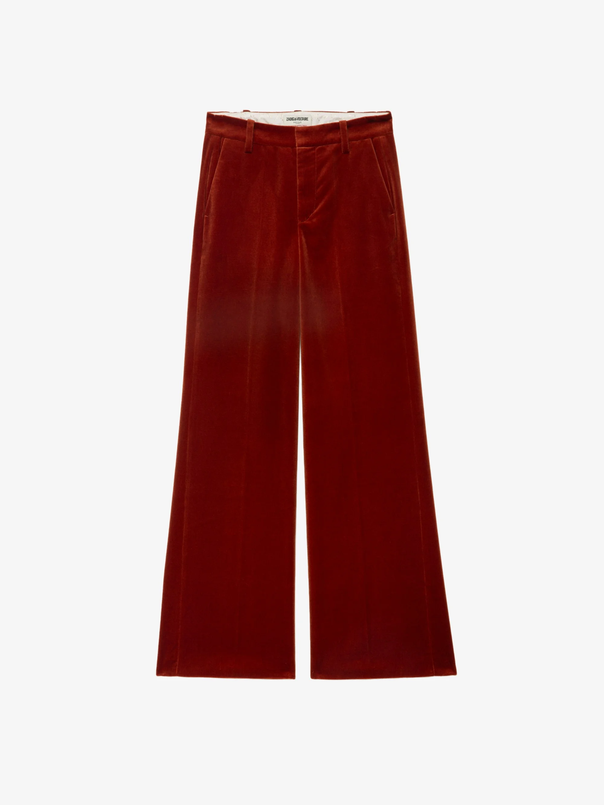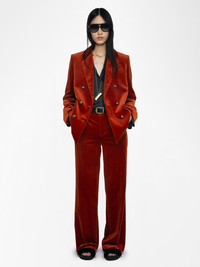 Wide straight tailored velvet pants. Description & details - 100% cotton velvet pants - Italian pockets - Welt pockets - High waist - Relaxed fit Model is 178 cm / 5' 10" and is wearing a size 36 This item fits true to size. Choose your usual size. Composition 100% Cotton Care - Hand-wash or machine-wash on a 20°C wool cycle with a maximum spin speed of 400 rpm - Do not wring - Air dry flat - Iron inside out at a maximum of 110°C, avoiding any customised details Product code: WWPA01868_BURN