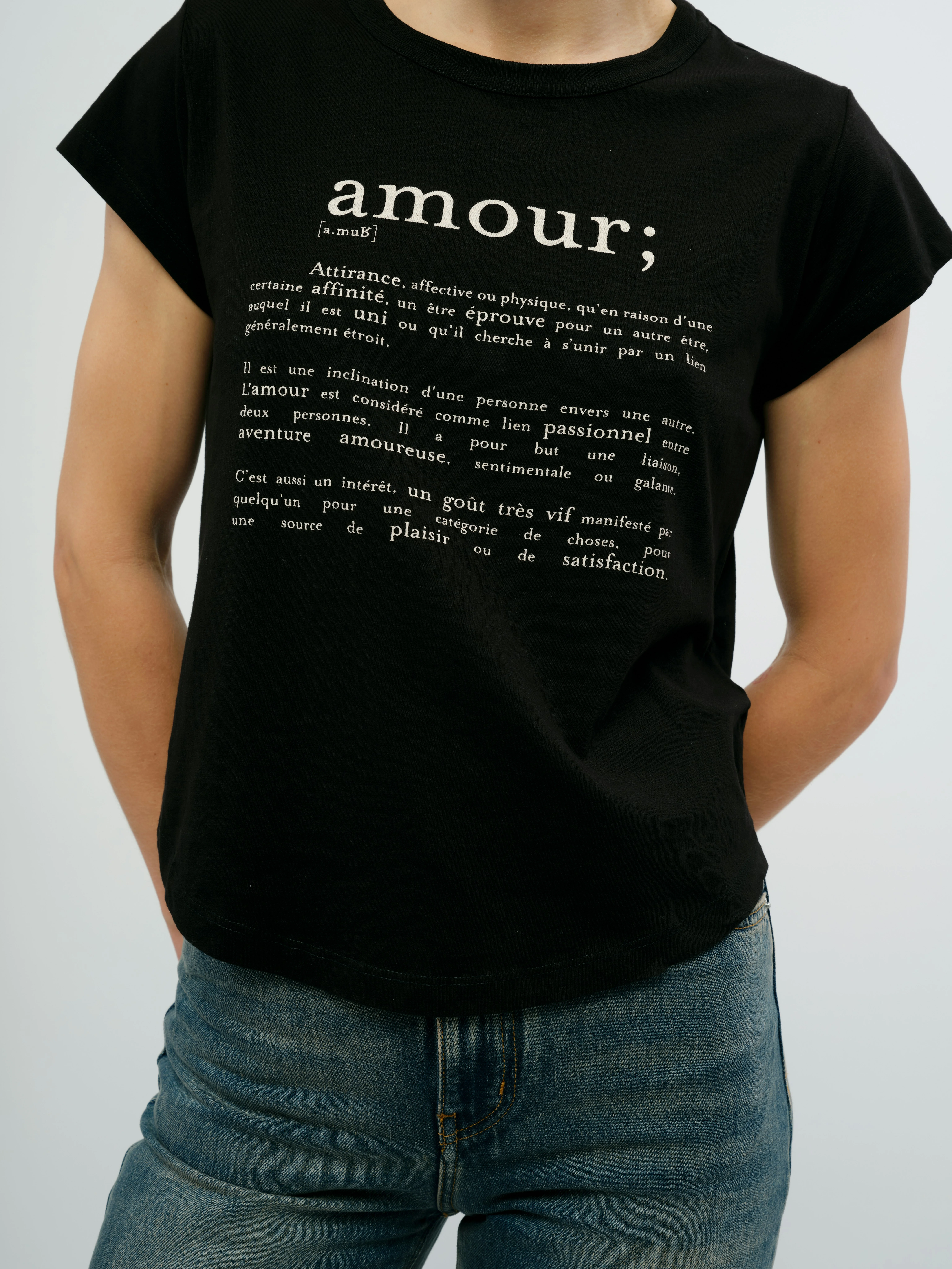 Casual tee with bold “Amour” graphic. Description & details Casual tee with bold “Amour” graphic. This item fits true to size. Choose your usual size. Composition 100% Cotton Product code: JWTS02891_BLACK