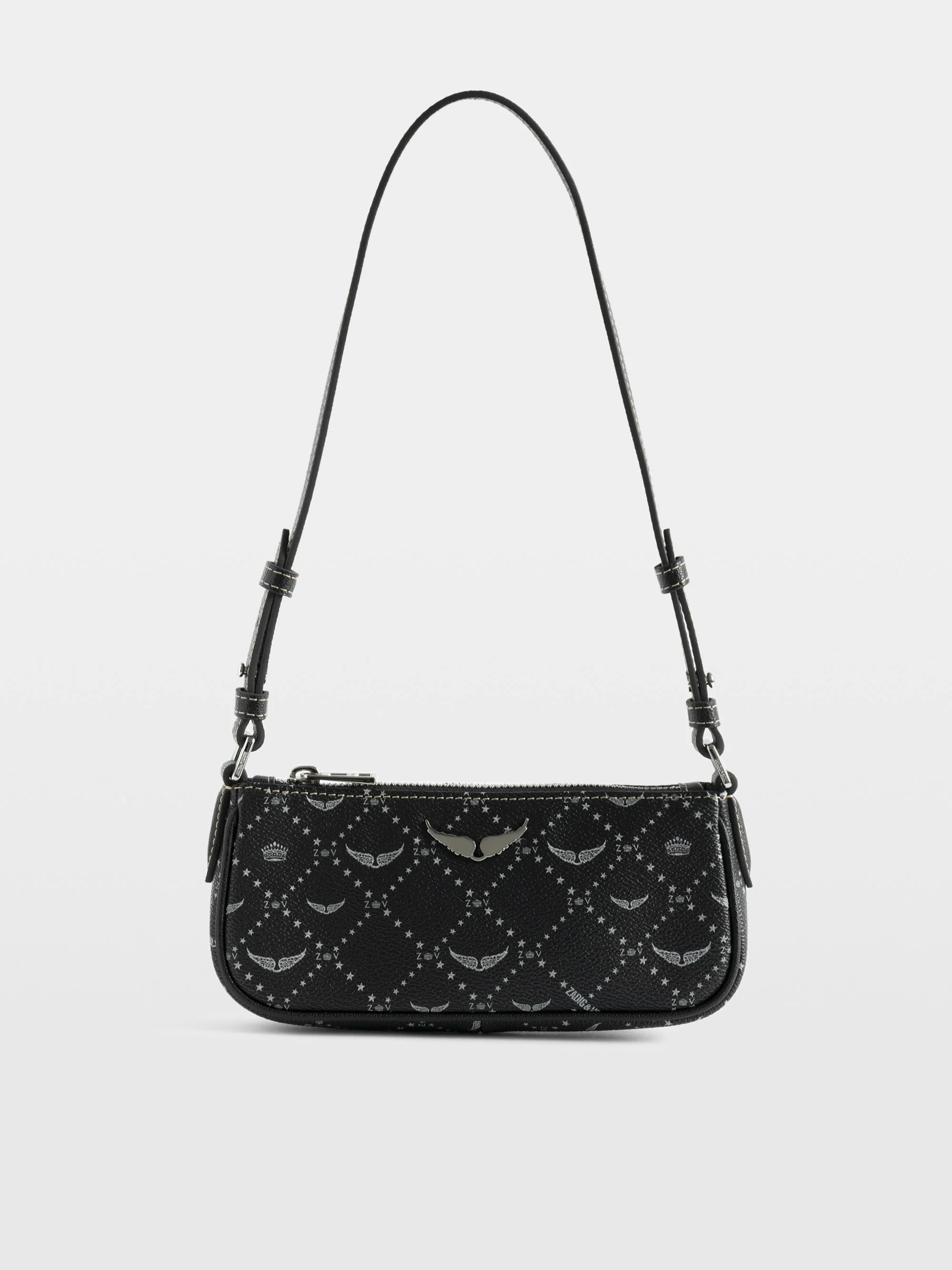 Monogram printed clutch with removable handle. Description & details - Coated canvas clutch - ZV monogram print - Thin and adjustable shoulder strap - Zip closure - Wings signature - Shoulder or cross-body wear 20 x 8.5 x 4 cm Composition 67% Polyurethane 33% Polyester** Care - Avoid contact or repetitive rubbing with light-coloured clothing to limit colour transfer - Be careful not to rub your product against abrasive surfaces - Avoid contact with liquids - Keep away from direct sunlight, heat and rain. If it gets wet, dry it immediately with a soft cloth - Store it in the case supplied at the time of purchase - To clean it, use a soft, dry cloth. Never use soap or solvents Product code: LWSG03745_BLACK
