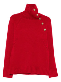 red high neck button embellishment raglan sleeves ribbed hem wool cashmere blend - Color: RED - Made in: Mauritius - Designer Style ID: KWSW02793 LOVE Composition and care Cashmere: 100.0%