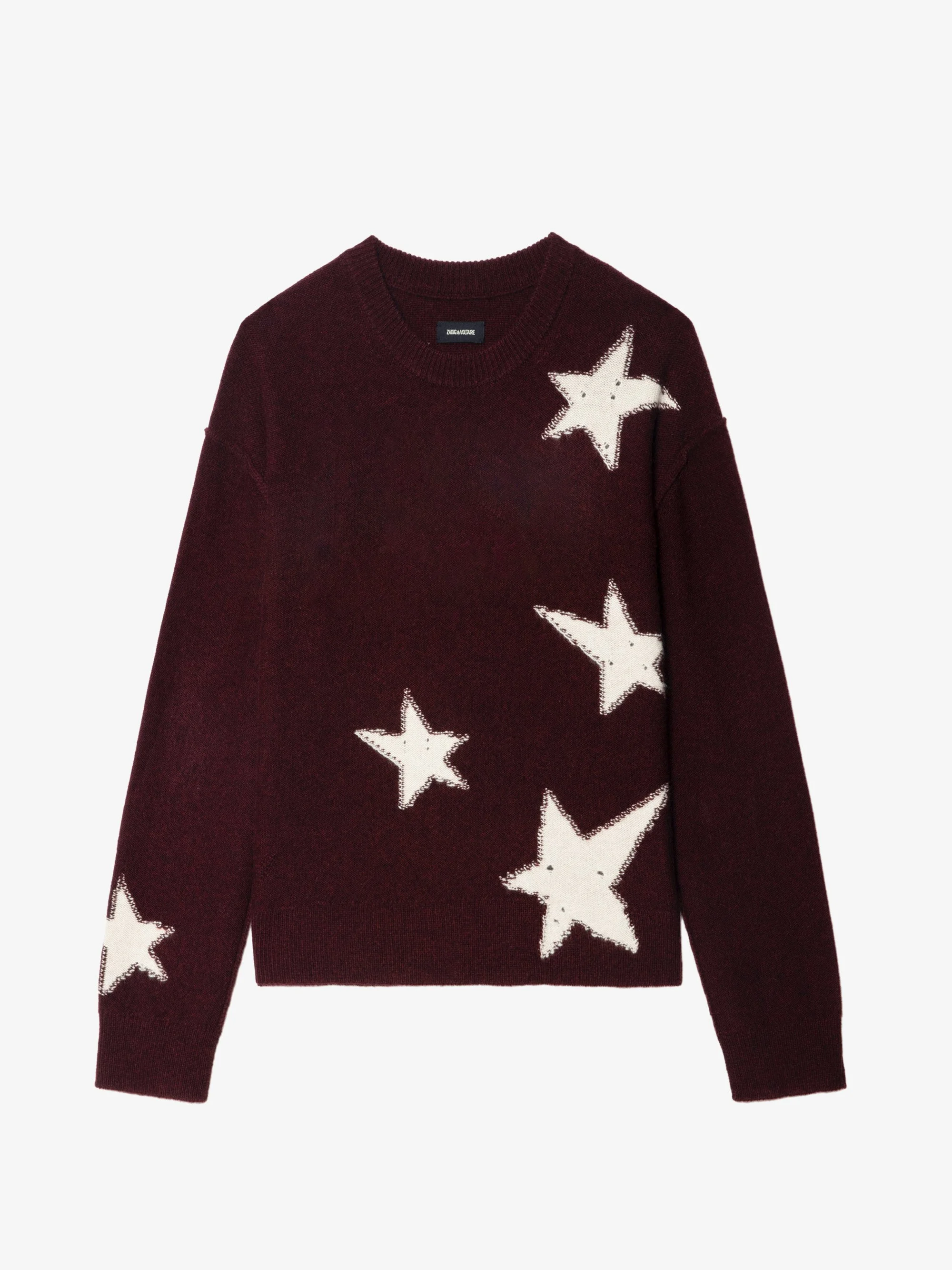 Sweater with round neck and star with worn effect. Description & details - 100% cashmere sweater - Star jacquard pattern with vintage effect - Round neck - Long sleeves Model is 178 cm / 5' 10" and is wearing a size S This item fits true to size. Choose your usual size. Composition 100% Cashmere Care - Hand-wash or machine-wash on a 20°C wool cycle with a maximum spin speed of 400 rpm - Do not wring - Air dry flat - Iron inside out at a maximum of 110°C, avoiding any customised details Product code: KWSW02844_BURGUNDY