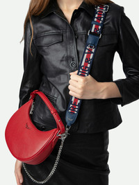 Women’s red leather and nylon shoulder strap with Zadig&Voltaire signature. Description & details - Power red nylon and leather shoulder strap - Adjustable and removable - Snap hooks - Contrasting Zadig&Voltaire signature - Navy blue grained leather panels and wings charm Height x Width x Length: 45.3 x 1.6 x 45.3 in. Composition 100% NYLON Care - Do not machine-wash your item - In case of stains, contact a leather professional Product code: LWOG00041_POWER