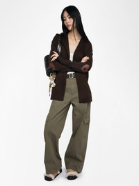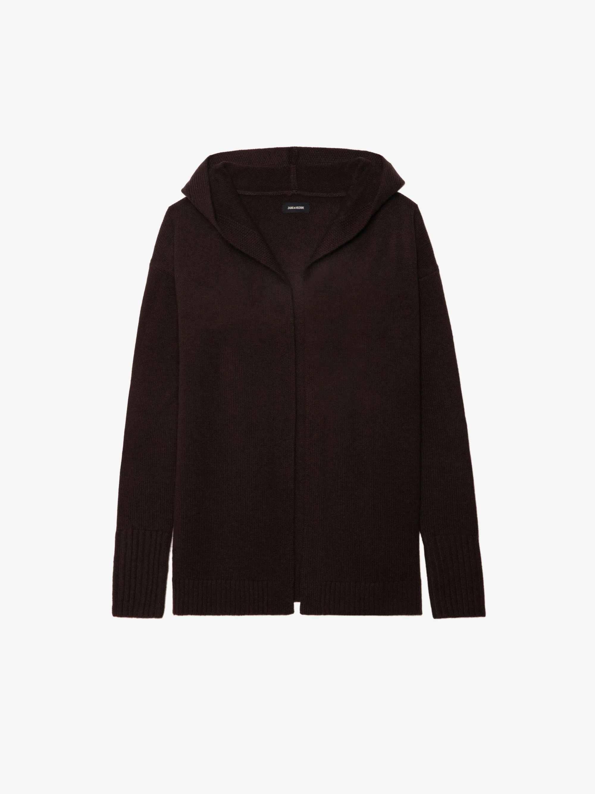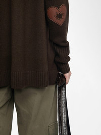 Brown wool and cashmere blend cardigan with leather patches on sleeves. Description & details - Wool and cashmere cardigan - Patch details on elbows - Hood - Wrap closure - Long sleeves Model is 177 cm / 5' 9" and is wearing a size XS/S This item fits true to size. Choose your usual size. Composition 90% Wool* 10% Cashmere Care - Hand-wash or machine-wash on a 20°C wool cycle with a maximum spin speed of 400 rpm - Do not wring - Air dry flat - Iron inside out at a maximum of 110°C, avoiding any customised details Product code: KWCA01668_DARK CHOCOLATE