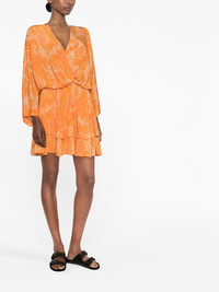 Hailey paisley-print dress orange silk paisley print V-neck long wide sleeves elasticated waistband tiered skirt thigh-length Imported Composition Silk 100% SIZE & FIT Model measurements Height 5 ft 10 in(1.77 m) Bust/Chest 31.49 in(80 cm) Hips 33.85 in(86 cm) Waist 22.44 in(57 cm) FittingInformation This piece fits true to size. We recommend you get your regular size Designed for a loose fit with a close fit at the waist Made with a mid-weight non-stretch fabric Washing instructions Hand Wash