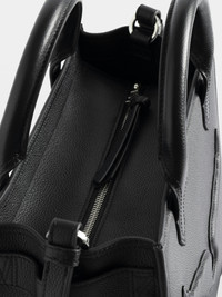 Small grained leather bag with double handles, shoulder strap and embossed wings signature. Description & details - Small grained leather tote bag - Double leather handles - Adjustable, detachable leather shoulder strap - Zip closure - Interior zip pocket - Embossed wings signature - Hand or shoulder carry 25 x 21.5 x 13 cm Composition 100% Cow leather Care - Protect your leather item from humidity and any source of heat (radiator, sun) - Avoid your item coming into contact with water - Regularly care for your leather item using a colourless nourishing cream for leather, suitable for leather goods - Ensure you wear your item with similar colours - Avoid overfilling your bag to ensure its durability - In case of stains, contact a leather professional Product code: LWBA04246_BLACK