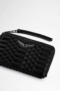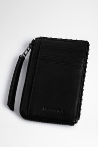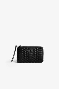 Quilted leather card holder in black Description & details A practical card holder with card slots on one side and a zipped pocket on the other. - Zadig&Voltaire women's quilted leather card holder in black - 4 card slots - 1 flat pocket - 1 zipped pocket Width x Height : 10.5 x 7 cm. Composition 100% LAMBSKIN Care Protect from light and humidity. Avoid any abrasive surface. Have cleaned by a leather specialist. Product code: LWSG00060_NOIR