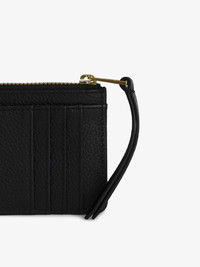 Women’s black grained leather card holder with studded trim and wings charm. Description & details - Women’s ZV card holder in black and gold grained leather - Studded trim and gold diamante wings charm - 4 card slots - 1 flat pocket and 1 zipped pocket - Embossed Zadig&Voltaire branding Width x Height : 13,5 x 7 cm Composition 100% Cow leather Care Do not expose your item to a source of heat or to sunlight for a prolonged period. In the event of accidental exposure to water, leave your item to dry at room temperature, away from direct light. Avoid routinely overloading your handbag or clutch. To prolong its life, store your item in a dust bag and pad it with tissue paper to maintain its shape. To maintain the shine of your smooth or grained leather item, use a leather cream or polish. Product code: LWSG00011_BLACK GOLD