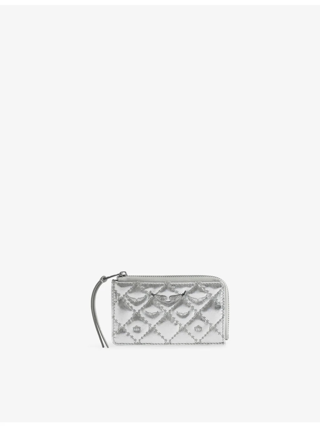 PRODUCT DETAILS - Zadig&Voltaire metallic-leather card holder - 100% leather - Zip fastening - Rectangle shape, all-over monogram pattern, metal wing at front, four card slots, one zipped pocket, one slip pocket, metallic finish - Height 8cm, width 13.5cm - Specialist leather clean Ref: R04587899