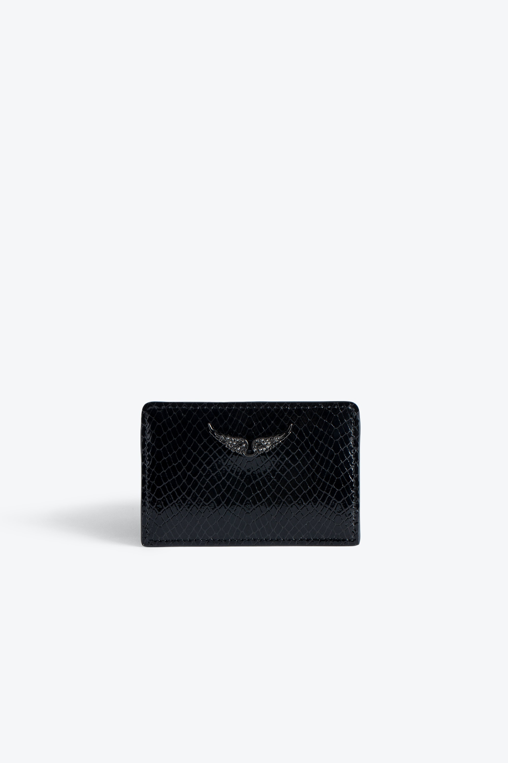 Women’s black python-effect patent leather card holder with diamanté wings charm. Description & details - Women’s ZV Pass card holder in black python-effect patent leather - Metal wings charm with silver diamanté - 2 slots - Embossed Zadig&Voltaire branding Height x Width x Length: 2.8 x 4.1 x 0.4 in. Composition 100% CALFSKIN Care - Protect your leather item from humidity and any source of heat (radiator, sun) - Avoid your item coming into contact with water - Regularly care for your leather item using a colourless nourishing cream for leather, suitable for leather goods - Ensure you wear your item with similar colours - Avoid overfilling your bag to ensure its durability - In case of stains, contact a leather professional Product code: LWSG01168_NOIR
