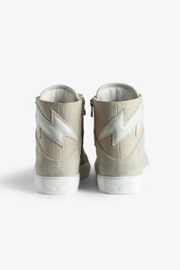 Women's high-top sneakers in snakeskin-effect beige leather with flash motif. Description & details Now in snakeskin-effect leather, the Zadig&Voltaire signature ZV1747 high-top sneaker has been revamped in this new version with ZV-printed laces and a zip fastening on the inside. - Women's Zadig&Voltaire ZV1747 high-top sneakers in smooth white leather - Beige snakeskin-effect leather - Flash overlays - ZV-printed laces - Inner zip fastening - ZV-printed tongue - Platform insole: 2.7 cm - Made in Portugal Composition 100% COW LEATHER Product code: SWSN00429_FLASH