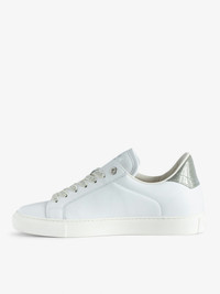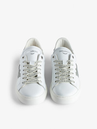 Women’s white smooth leather low-top trainers with lightning bolt panels and silver glitter reinforcement. Description & details - Women’s Silver low-top lace-up trainers - Lightning bolt panel and glitter reinforcement - Zadig&Voltaire branded tongue, laces and reinforcement - Made in Portugal This item is true to size. We recommend buying your usual size. Composition 100% CALF LEATHER Care - Protect your leather item from humidity and any source of heat (radiator, sun) - Avoid your item coming into contact with water - Regularly maintain the shine of your smooth or grained leather shoes with a leather polish Product code: SWSN00452_SILVER