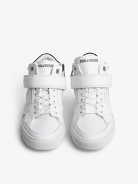 Women’s white leather mid-top sneakers Description & details Zadig&Voltaire’s iconic ZV1747 sneakers are available this season in a smooth white leather version featuring lightning bolt topstitching and a Velcro fastening with a wings charm. - Zadig&Voltaire women's ZV1747 mid-top sneakers in white smooth leather - Lightning bolt topstitching - Velcro fastening with metal wings - Contrasting reinforcement - White laces - ZV printed tongue - Made in Portugal Platform insole: 2.7 cm. This item is true to size. We recommend buying your usual size. Composition 100% CALFSKIN Care Do not expose your item to a source of heat or to sunlight for a prolonged period. In the event of accidental exposure to water, leave your item to dry at room temperature, away from direct light. Brush your shoes after every wear and let them rest as much as possible between each wear, with shoetrees inside them to let them breathe and to maintain their shape. To maintain the shine of your smooth or grained leather item, use a leather cream or polish. Product code: SWSN00072_BLANC