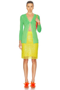 Details - 83% viscose, 17% enhanced polyethylene resins - Made in China - Dry clean - Fully lined - Hidden side zipper closure - Open knit crochet fabric with sequined embellishments throughout - Item not sold as a set - Our Style No. ZKOF-WQ6 - Manufacturer Style No. 25S041