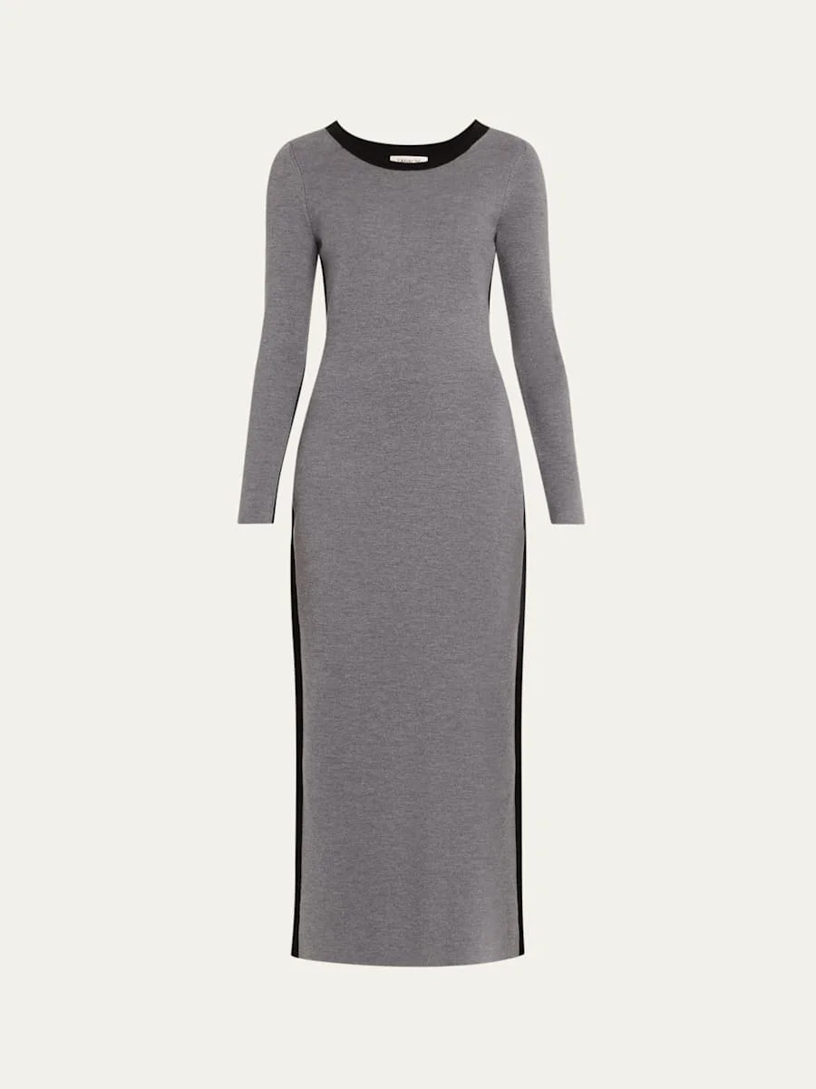 ZANKOV "Angie" dress defines sculptural elegance with its color-blocking knit and unexpected sleeve cutouts Round neckline Long sleeves Sheath silhouette Ankle length Slipover style Merino wool Imported Proposition 65 warning for California residents Online Inquiries: BGS21_BAAUW| Store Inquiries: #5069596