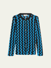 - ZANKOV "Bowery" cardigan in an artfully metallic open-knit - Crew neckline; button front - Long sleeves - Fitted - Polyester/Lurex® metallic fibers - Imported - Proposition 65 warning for California residents