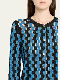 Bowery Metallic Open-Knit Crewneck Cardigan