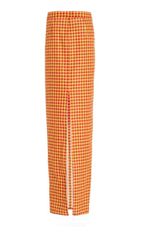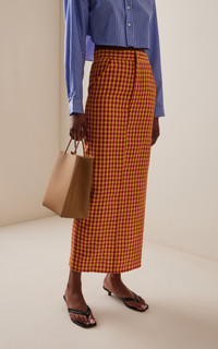 ZANKOV is a knitwear collection that establishes a new visual language in fashion and textiles through shape, texture and color. Quality and finish are paramount: the inside of each garment is just as important as the outside. Zankov often juxtaposes fine natural fibers such as virgin wools, mohair, Merino and Alpaca with distinctly crafted techniques such as intarsias, double knit jacquards and digital printing. The 'Ludivine' skirt features a fitted pencil shape crafted from micro-checked vichy linen. PRODUCT DETAILS - Spring/Summer '25 - Concealed zip fastening along front - Composition: 100% Linen - Dry clean only - Made in the USA SIZE & FIT - Designed for a slim fit