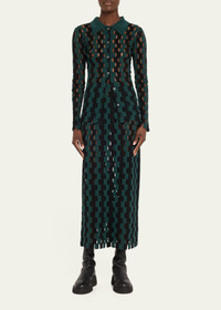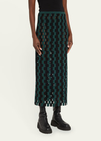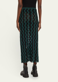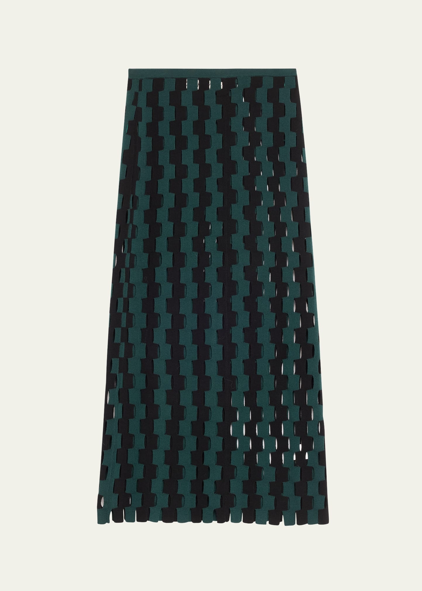 ZANKOV "Marshall" open-knit skirt in colorblock abstract design High waist Straight silhouette Full length Pull-on style Merino wool Dry clean Imported Model is 5'10"/177cm. Online Inquiries: BGS21_B99NR| Store Inquiries: #4582103
