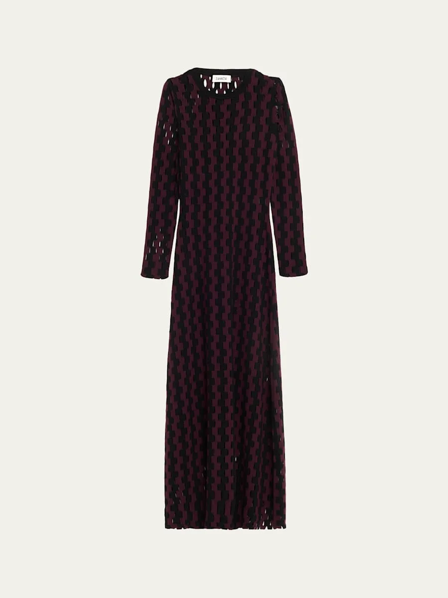Natalie Two-Tone Open-Knit Long Sleeve Maxi Dress