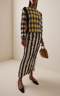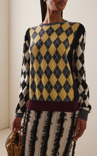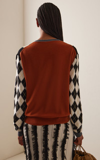 PRODUCT DETAILS - Patchwork argyle design, crew neck, long sleeve, ribbed trim - Slip on - Unlined - Composition: 100% Merino Wool - Color: multi - Dry clean only - Fall/Winter '25