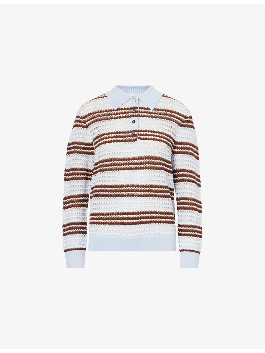 PRODUCT DETAILS - Zankov wool top - 100% wool - Regular fit, classic collar, buttoned placket, long sleeves, all-over scalloped crochet knit, contrast ribbed trims - Dry clean - True to size - Model is 5ft 10in/1.78m and wears a size small - Lightweight, stretchy Ref: R04579449