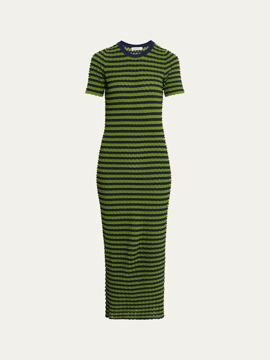 Striped Popcorn Knit Short-Sleeve Maxi Dress
