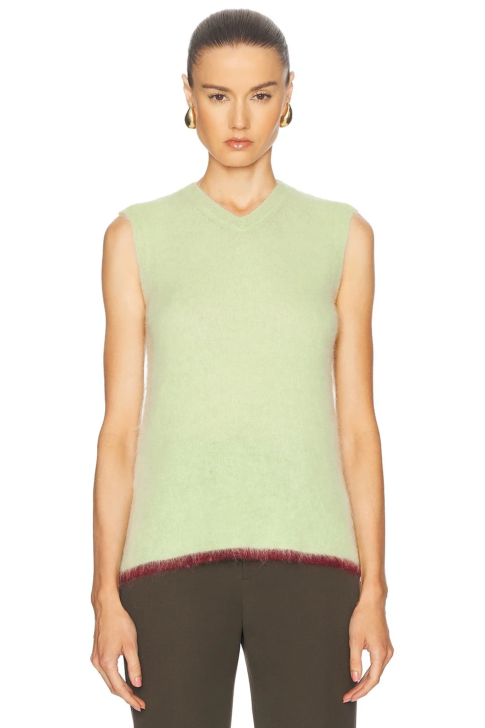 Details - 35% mohair, 35% alpaca, 30% polyamide - Made in China - Dry clean only - Singular back button closure - Knit fabric with open back design - Please note: Scarf is not included - Our Style No. ZKOF-WK4 - Manufacturer Style No. 24F027