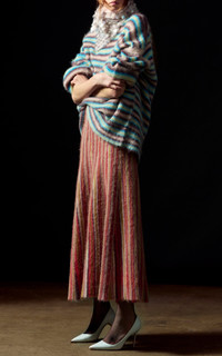 PRODUCT DETAILS - High-waisted, flared hem, maxi - Slip on - Unlined - Composition: 35% Mohair, 35% Alpaca, 30% Polyamide - Color: stripe - Dry clean only - Fall/Winter '25