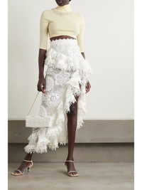 Zimmermann's sweater is traced with shimmering crystals along the base of the turtleneck, creating the illusion of a glittering necklace. It's made from soft merino wool and has three-quarter sleeves and a cropped hem. Style it with a high-rise skirt. This product supports best practice in Animal Welfare. Find out more about NET SUSTAIN here.