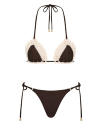 ITEM DETAILS The Acacia Crochet Tri Bikini in Chocolate from our Resort Swim 2025 Collection. A crochet lycra bikini set featuring crochet edging and self tie straps with toggle ends. - Lycra bikini - Crochet edging on top - Triangle top - Low rise bottoms - Self tie straps with toggle ends Style Code: 1061WRS252 SIZE DETAILS This garment fits true to size Model is 5'10.5"/179 cm, bust size 34C/12C and wears a size 0 CARE INSTRUCTIONS Main: 80% polyamide, 20% elastane, lining: 92% polyamide, 8% elastane, crochet: 100% cotton Do not roll up when wet; Rinse thoroughly after use; Cold hand wash separately with mild detergent, avoid fabric softener; Do not soak; Reshape garment whilst damp; Lay flat to dry; Do not bleach or iron; Do not tumble dry; Do not dry clean; Light colours may be transparent when wet; Avoid contact with suntan lotions, oils and rough surfaces; Avoid high temperature pools and spas treated with harsh chemicals; Always check the label or care card for specific care instructions.
