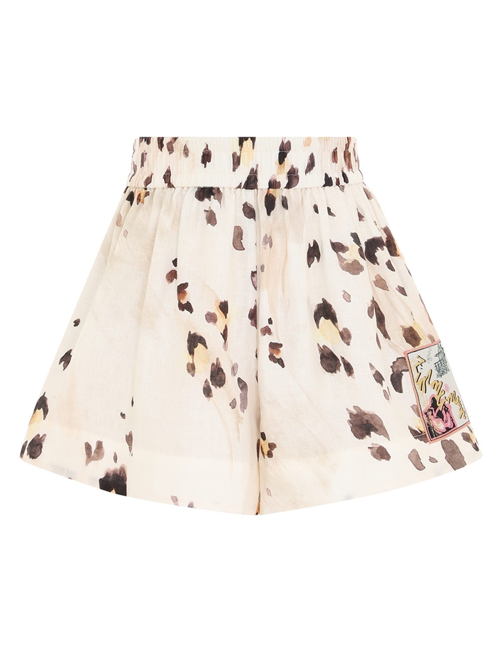 ITEM DETAILS The Acacia Relaxed Short in Watercolour Leopard from our Resort Swim 2025 Collection. A linen short featuring an elasticated waistband and side seam pockets. - Linen short - Elasticated waistband - Side seam pockets - ZIMMERMANN patch - Lined Style Code: 0695ARS252 SIZE DETAILS 0P 0 1 2 3 Length 36 38 39 40 41 Waist 65 68 73 78 83 Elastic waist for a flexible fit This garment fits true to size Available in size 0P, suited to clients who are under 5'3"/ 160cm Model is 5'9.5"/178 cm, bust size 32C/10C and wears a size 0 Item measurements have been rounded to the nearest cm CARE INSTRUCTIONS Main: 100% linen, lining: 100% cotton Dry clean code f (hydrocarbon only), inside out in a protective bag; Remove detachable trims and accessories prior to cleaning; Cover to protect hardware; Cool iron with protective cloth; Do not spot clean; Always check the label or care card for specific care instructions.