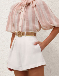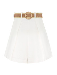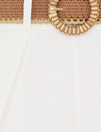 ITEM DETAILS The Acacia Tuck Short in Ivory from our Resort Swim 2025 Collection. A high waisted linen short featuring side seam pockets and a raffia trim belt. - Linen high waisted short - Side seam pockets - Removable raffia buckle belt - Tucks throughout - Invisible zip at centre back Style Code: 1201ARS252 SIZE DETAILS 0P 0 1 2 3 Length 39 41 42 43 44 Waist 64 67 72 77 82 Fitted through the waist This garment fits true to size Available in size 0P, suited to clients who are under 5'3"/ 160cm Model is 5'9.5"/178 cm, bust size 32C/10C and wears a size 0 Item measurements have been rounded to the nearest cm CARE INSTRUCTIONS Main: 100% cotton, lining: 100% cotton Dry clean code f (hydrocarbon only), inside out in a protective bag; Remove detachable trims and accessories prior to cleaning; Cover to protect hardware; Cool iron with protective cloth; Do not spot clean; Always check the label or care card for specific care instructions.