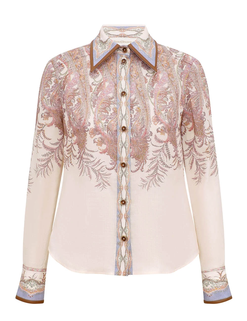 ITEM DETAILS The Alchemy Body Shirt in Cream Paisley from our Spring 2026 Collection, Kindred Spirit. A ramie shirt featuring a classic collar, long sleeves, finished with centre front buttons and fitted cuffs. - Ramie fabric - Classic collar with faux leather trim - Centre front buttons - Sleeves gathered into fitted cuffs - Placement printed Style Code: 4501TS262 SIZE DETAILS 0P 0 1 2 3 4 Length 22 23.5 23.5 24 24 24.5 Bust 37 38.5 41 42.5 45 47 Sleeve 22.5 24 24.5 25 25 25 Relaxed fit This garment fits true to size Available in size 0P, suited to clients who are under 5'3"/ 160cm Model is 5'9.5"/178 cm, bust size 32C/10C and wears a size 0 Item measurements are in inches CARE INSTRUCTIONS Main: 100% ramie; trim: 100% polyurethane Dry clean only code f (hydrocarbon only); Remove any detachable trims prior to dry cleaning; Cover to protect trim; Iron in low temperature with protective cloth; Light steam only; Do not spot clean Always check the label or care card for specific care instructions.