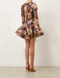 ITEM DETAILS The Alchemy Peplum Mini Dress in Rosette from our Spring 2026 Collection, Kindred Spirit. A silk-linen mini dress featuring a crew neckline, long fitted sleeves with flared cuffs, finished with a removable waist belt and full flare skirt. - Silk-linen blend fabric - Round neckline with crystal trim - Long, fitted sleeves with tiered frill cuffs - Invisible zip at centre back - Voluminous skirt with stiff tulle - Removable waist belt - Comes with a separate jersey slip Style Code: 7562DS262 SIZE DETAILS 0P 0 1 2 3 4 Length 30.5 32.5 32.5 33.5 34 34.5 Bust 32.5 34.5 36 38.5 40 42.5 Waist 26 27 29 31.5 33 35.5 Sleeve 23 25 25 25.5 25.5 26 Fitted at the bust, waist and sleeves Relaxed through the skirt Mid-weight, non-stretchy fabric This garment fits true to size Available in size 0P, suited to clients who are under 5'3"/ 160cm Model is 5'9.5"/178 cm, bust size 32C/10C and wears a size 0 Item measurements are in inches CARE INSTRUCTIONS Main: 53% linen, 47% silk; contrast: 100% polyester; slip: 86% recycled polyester, 14% elastane Main: Dry clean only code f (hydrocarbon only); Remove any detachable trims prior to dry cleaning; Cover to protect trim; Iron in low temperature with protective cloth; Light steam only; Do not spot clean Slip: Gentle cold hand wash separately with mild detergent; Do not bleach; Dry in shade; Iron in low temperature with protective cloth; Do not tumble dry; Dry cleanable code f (hydrocarbon only); Always check the label or care card for specific care instructions.