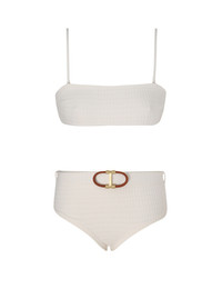ITEM DETAILS The Alight Textured Boyleg Bikini in Ivory Texture from our Resort Swim 2024 Collection. A textured lycra bikini set featuring a bandeau bra and a boyleg style pant with a removable elasticated belt. - Lycra bikini set - Elastic belt with buckle detail - Detachable bra straps - Boning at bra side seams - Centre back clip on bra - Lined Style Code: 8608WRS241 SIZE DETAILS This garment fits true to size Model is 5'9.5"/178 cm, bust size 32C/10C and wears a size 0 CARE INSTRUCTIONS Main: 78% polyamide 22% elastane straps: 72% polyamide 28% elastane lining 92% polyamide 8% elastane Exclusive of trims Do not roll up when wet Rinse thoroughly after use Please remove belt before washing. Cold hand wash separately Dry in shade Do not bleach or iron Light colours may be transparent wet Avoid contact with suntan lotions, oils and rough surfaces Avoid high temperature pools and spas treated with harsh chemicals Always check the garment care label for specific care instructions.